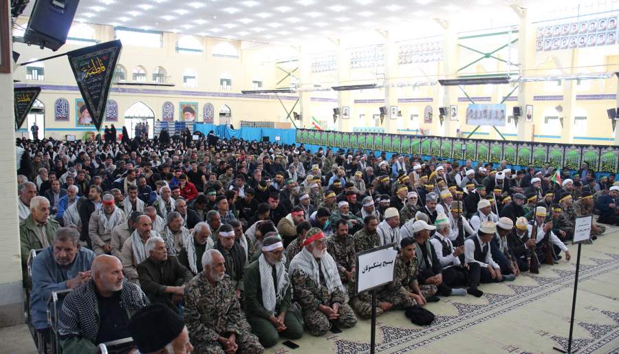 شرکتکنندگان در این گردهمایی با دردستداشتن پرچمهای ایران و شعارنوشتههای تأیید و پشتیبانی از نظام، بر وفاداری بیقیدوشرط خود به آرمانهای امام راحل و منویات مقام معظم رهبری تأکید کردند.